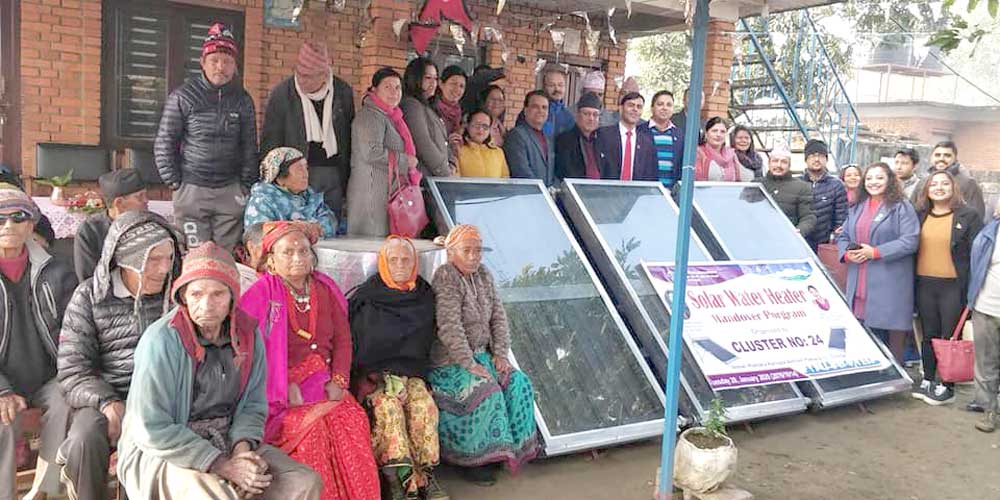 मंगलबार एक कार्यक्रमबीच उक्त सोलार वाटर हिटर हस्तान्तरण गरिएको क्लस्टर प्रमुख शिवराज आचार्यले जानकारी दिए । ‘क्लस्टर अन्तर्गतका सम्पूर्ण क्लबहरुको सहभागितामा सहयोग हस्तान्तरण गरिएको हो,’ उनले भने ।