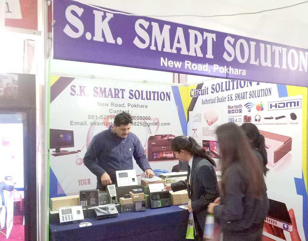 जेट केटी इको ब्राण्डको हाजिरी मेसिनसँगै डोरलक सिस्टम, थम प्याड, सिग्नेचर प्याड, सिसी टिभी क्यामरा, कार्ड प्रिन्टर, पिओएस मेसिन, बारकोड मेसिन पनि एस.के. स्मार्ट सोलुसनले पोखरामा बिक्री वितरण गरिरहेको थापाले बताए । कम्प्युटर तथा ल्यापटप, प्रिन्टर, प्रोजेक्टर, आउजा ब्राण्डको साउण्ड सिस्टम तथा पोडिएम माइक, मिस्चर लगायतका ब्राण्ड पोखरा तथा आसपासमा बिक्री वितरण भइरहेको थापाले आर्थिक आवाजलाई जानकारी दिए ।