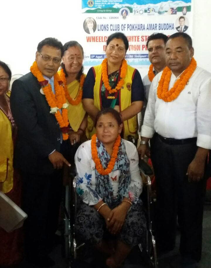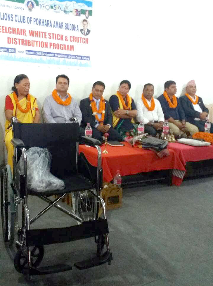 पोखरा, ४ भदौ । लायन्स क्लब अफ पोखरा अमर बुद्धले शारिरीक अपाङ्गता भएका व्यक्तिलाई सहयोग गरेको छ । क्लबले एक कार्यक्रमका बीच ह्बिल चियर, सेतो छडी र वैशाखी प्रदान गरेको हो । पोखरा ८ मा रहेको ओमन स्किल्स डेभलपमेन्ट अगनाइजेसनमा काम गर्ने अपाङ्गता भएका व्यक्तिलाई ह्बिल चियर, सेतो छडी र वैशाखी प्रदान गरिएको क्लबका अध्यक्ष शान्तादेवी थापा भण्डारीले जानकारी दिइन् ।