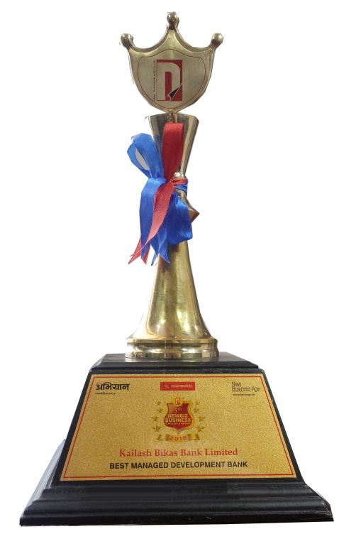 कैलाश विकास बैंक लिमिटेडले यस वर्षको बेष्ट म्यानेज्ड डेभलपमेन्ट बैंकको अवार्ड जित्न सफल भएको छ । न्यू बिजनेश एज प्रा. लि. को आयोजनमा शुक्रबार विजनेश एवार्ड कार्यक्रममा न्यू बिज बिजनेश कन्क्लेभ तथा अवार्ड २०१८” बाट बेष्ट म्यानेज्ड डेभलपमेन्ट बैंकको अवार्ड कैलाश विकास बैंकलाई प्रदान गरिएको हो । उक्त कार्यक्रममा यसै संस्थाका सिनियर एक्सिक्युटिभ कृष्ण गोपाल मानन्धरले अवार्ड ग्रहण गरेका थिए । विकास बैंकहरु माझ छुट्टै पहिचान बनाइ राख्न सफल कैलाश विकास बैंकले यस अघि पनि नेपाल राष्ट्र बैंक, पोखरा उधोग बाणिज्य संघ र नेपाल चार्टर्ड एकाउनटेन्ट संस्थाबाट सम्मान तथा अवार्ड प्राप्त गरेको थियो ।