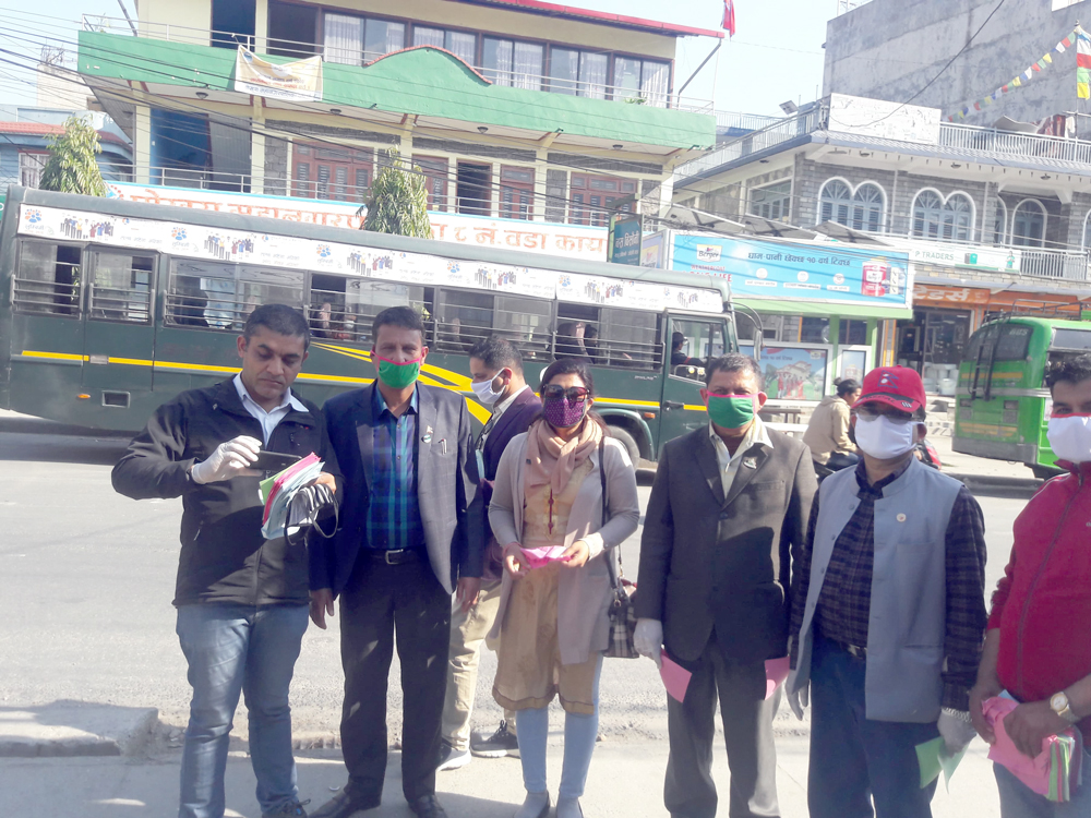सर्वसाधारणलाई सचेत गराउँदै मास्क तथा जानकारीमूलक पर्चा वितरण समेत गरिएको उनले बताए । पोखराको नागढुंगा, शिवालयचोक, सिर्जनाचोक, जिरो किमी, सभागृहचोक, न्यूरोड क्षेत्रमा सर्वसाधारणलाई १ हजार वटा मास्क वितरण गरिएको छ । अभियान बुधबार पनि जारी रहेको तिमिल्सनाले जानकारी दिए ।