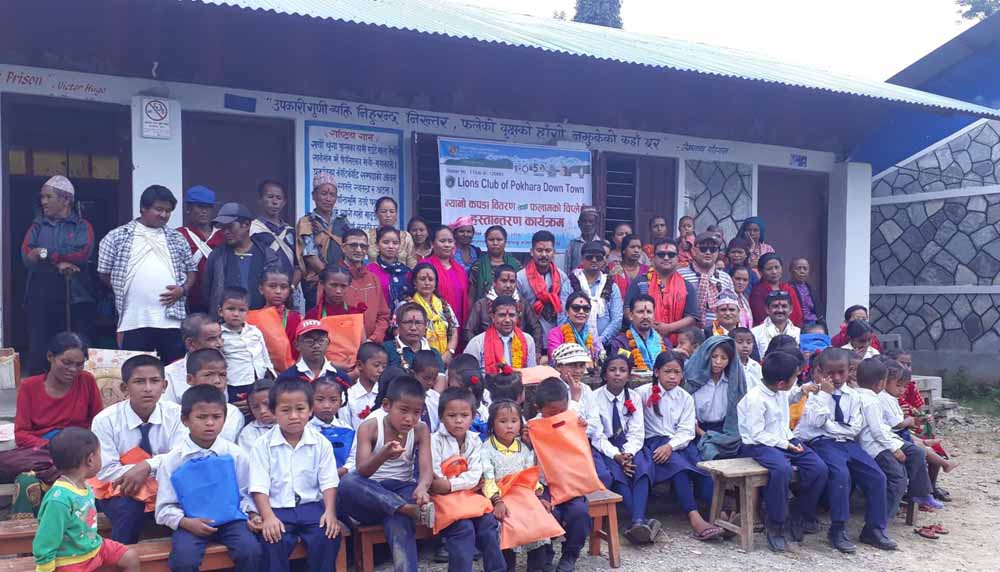 लायन्स क्लव अफ पोखरा डाउन टाउनले माछापुच्छ्रे गाउँपालिका वडा नं २ खाँदरजुगमा रहेको वाराही आधारभुत विद्यालयका विद्यार्थीहरुलाई न्यानो कपडा तथा खेलकुद सामाग्री वितरण गरेको छ ।