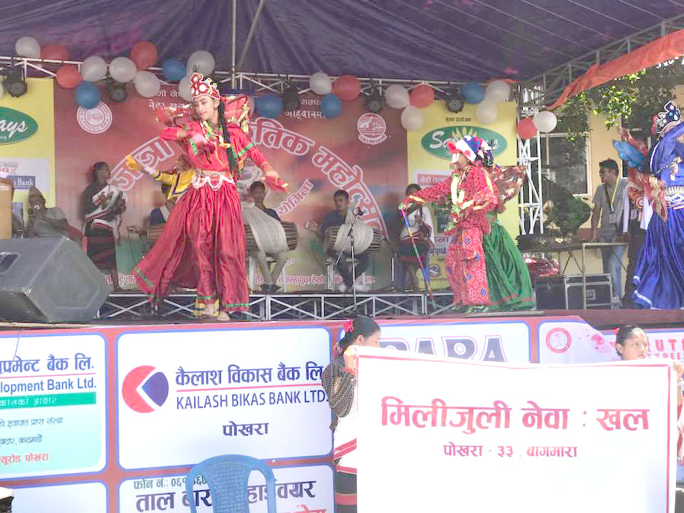 यस अघि कार्यक्रमको उद्घाटन गर्दै पोखरा महानगरपालिका का प्रमुख मानबहादुर जिसीले कला, संस्कृति र भाषानै हाम्रो पहिचान भएको स्मरण गराउदै यसको संरक्षणमा सबै लाग्नुपर्ने कुरामा जोड दिएका थिए । नेवाः खल कास्कीको रजत वर्षको सन्दर्भमा आयोजित कार्यक्रमको उद्घाटन २५ वटा ट्वारेवा बालेर गरिएको थियो । शुभारम्भ समारोहमा पोखरा महानगरपालिका वडा नम्बर ३ अध्यक्ष रबिन्द्रबहादुर प्रजु, वडा नम्बर ४का अध्यक्ष शंकर बास्तोला, नेवा खल कास्कीका अध्यक्ष अशोक पालिखे, कार्यक्रम संयोजक बिक्रम उदास लगायतले बोलेका थिए । तायमचा गाइजात्रा नाच समितीका अध्यक्ष श्रीकृष्ण कतिलाको अध्यक्षतामा भएको कार्यक्रमको सञ्चालन सञ्चारकर्मी सञ्जय मल्ल, मिस नेवा अंशु शाक्य र रोजिना श्रेष्ठले गरेका थिए ।