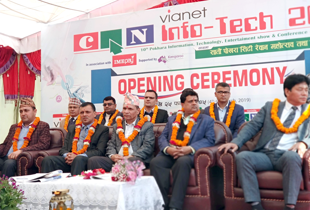 क्यान कास्कीका अध्यक्ष युवराज पौडेलको सभापतित्वमा आयोजित उद्घाटन कार्यक्रममा क्यान गण्डकी प्रदेशका अध्यक्ष चिन्तामणि बास्तोला, भायानेट प्रालिका पोखरा शाखा प्रमुख कृष्ण सुवेदी, आन्तरिक राजश्व कार्यालय पोखराका कर अधिकृत विजय लामिछाने, क्यान कास्कीका उपाध्यक्ष विश्वास भण्डारी, सचिव विकास भुर्तेल लगायतले बोलेका थिए । सूचना तथा प्रविधिका क्षेत्रमा चासो राख्नेहरुलाई लक्षित गरी पोखराको नयाँबजारस्थित प्रदर्शनी केन्द्रमा आयोजित क्यान इन्फोटेक फागुन २५ गतेसम्म चल्नेछ । कम्प्यूटर तथा सूचना प्रविधि सम्बन्धी भएका अत्याधुनिक एवं नवीनतम प्रविधिको जानकारी दिंदै ग्रामीण क्षेत्रसम्म यसको पहुँच पु¥याउने लक्ष्यले इन्फोटेक आयोजना गरिएको अध्यक्ष युवराज पौडेलले जानकारी दिए ।