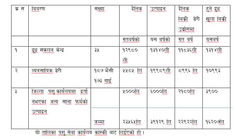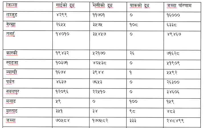 दुधको अबस्थाका बारेमा हाल सम्मको तथ्याङ्किय हिसाब निम्न अनुसार छ :