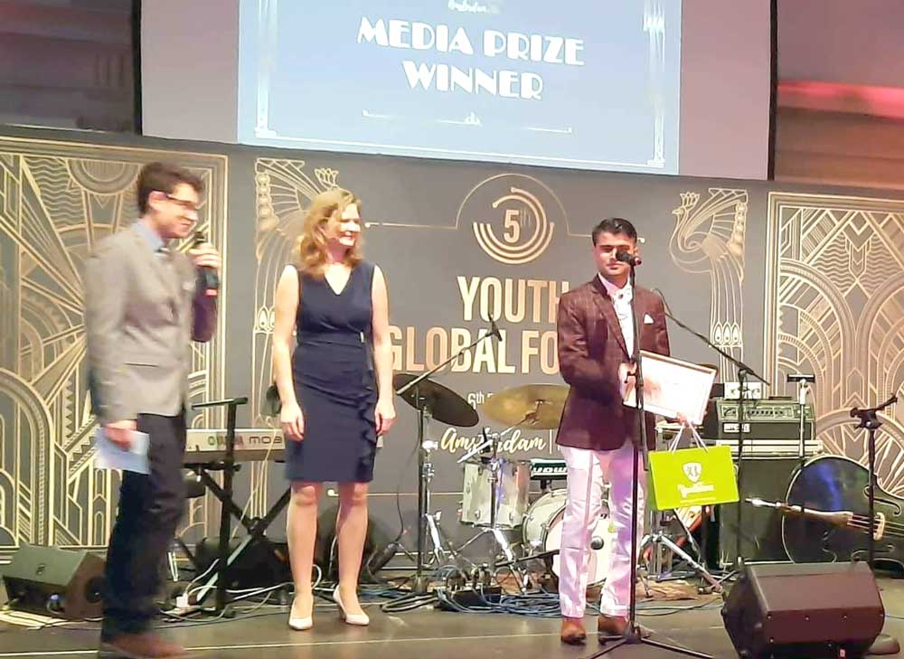 सृजनशील युवा मञ्चका अध्यक्ष समेत रहेका पौडेलले कार्यक्रममा दिएको विचार र मिडिया सामग्रीका आधारमा उत्कृष्ट अवार्ड दिएको सम्मेलनको आयोजक युथ टाइमको जुरी समितिकी संयोजक युलिया गतस्ताइनले अवार्ड समारोहमा घोषणा गरिन् । उनलाई अवार्डका साथमा आगामी सम्मेलनमा सहभागिताको अवसर मिलेको छ ।