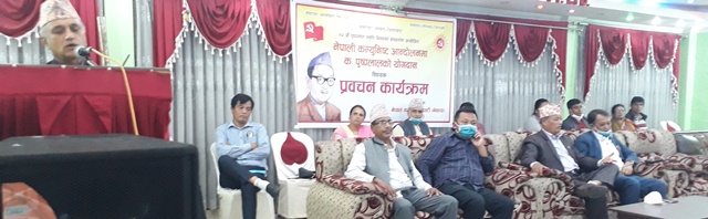 कार्यक्रमका प्रमुख वक्ता नेकपा केन्द्रीय सदस्य तथा गण्डकी प्रदेश सह–ईञ्चार्ज खगराज अधिकारीले पार्टी एक हुनुको विकल्प नभएको बताए । पार्टी विभाजनको कुनै गुञ्जायस छैन,‘उनले भने,‘नेतृत्वले कार्यशैली सुधारेर पार्टी एकताबद्ध बनाउनुको विकल्प छैन ।’ पार्टी अहिले विशिष्ट अवस्थामा रहेको भन्दै यसलाई जोगाई राख्नु नेतृत्वसँगै नेता, कार्यकर्ताकोपनि कर्तव्य भएकोमा उनले जोड दिए ।