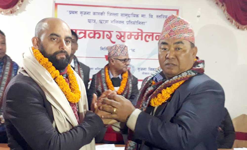 पत्रकार भेटघाटको अवसरमा जिल्ला भलिवल संघका पूर्व उपाध्यक्ष तथा भलिवलका रेफ्रीसमेत रहेका पोखरा समाज अष्टे«लियाका अध्यक्ष राजकुमार अधिकारीलाई भलिवल खेलको विकासमा योगदान दिएको भन्दै दोषल्ला ओढाएर सम्मान गरिएको थियो ।