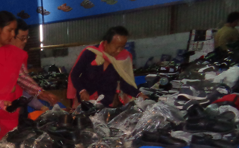 स्थानीय जुत्ता व्यवसायीको अवरोधका बीच शुक्रबार हुन नसकेको जुत्ता चप्पल व्यापार मेला शनिबारदेखि संचालनमा भएको छ । नेपाली जुत्ता घर प्रालिको आयोजनामा हुने मेला शनिबारदेखि एक हप्तासम्म चल्नेछ । आयोजकले सम्पूर्ण उपभोक्ताहरुलाई जुत्ता मेलामा सहभागी भई नेपाली उत्पादनका जुत्ताको प्रबद्र्धनमा सहयोग गरिदिन आह्वान समेत गरेको छ ।
