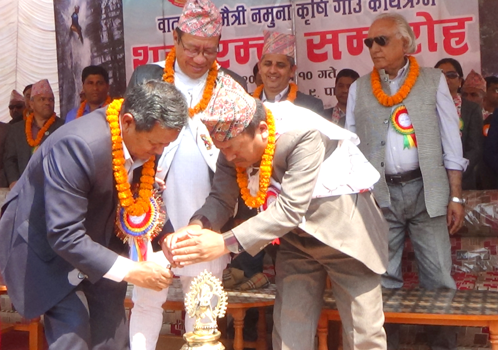त्यस्तै आन्तरिक मामिला तथा कानूनमन्त्री हरिबहादुर चुमानले सबै खालका दक्ष, क्षमता, अनुभव र विशेषज्ञता गाँउमा केन्द्रित हुने बताए । भूमि व्यवस्था, कृषि तथा सहकारीमन्त्री लेखबहादुर थापाले नमूना कृषि गाउँ कार्यक्रम मार्फत समृद्ध नेपाल सुखी नेपाली बनाउने अभियानमा थप सघाउ पुग्ने विश्वास व्यक्त गरे ।