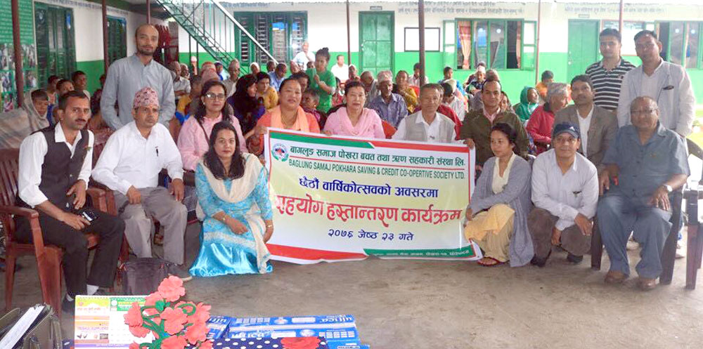 पोखरा । बागलुङ समाज पोखरा बचत तथा ऋण सहकारी संस्थाले छैटौं वार्षिकोत्सव मनाएको छ । वार्षिकोत्सवको अवसरमा बिहीबार मानवसेवा आश्रम पोखरालाई सहकारीका तर्फबाट सहयोग हस्तान्तरण गरिएको अध्यक्ष कमला गिरीले जानकारी दिइन् ।