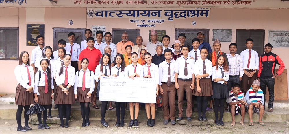 हरितालिका तिजको अवसरमा क्याम्पसका विद्यार्थीहरुको अग्रसरतामा सामाजिक कार्य अन्तर्गत पोखरा–१४ बाच्छेवुडुवामा रहेको वास्त्यायन बृद्घाश्रममा रहेका वृद्ध वृद्धाहरुलाई फलफूल वितरण गर्नुका साथै आश्रम निर्माणार्थ नगद रु १५००० (पन्ध्र हजार मात्र ) व्यवस्थापन समितिलाई हस्तान्तरण गरीएकोे क्याम्पसका प्रशासक राजु पराजुलीले जानकारी दिए । कार्यक्रममा प्रा.लि.का अध्यक्ष लिलाधर बराल, प्रबन्ध निर्देशक राजकुमार गिरी, क्याम्पस प्रमुख कृष्ण बहादुर के.सी, शिक्षक तथा विद्यार्थीहरुको उपस्थिति रहेको थियो । कार्यक्रमको संञ्चालक संयोजक बाबुराम लामिछानेले गरेका थिए ।