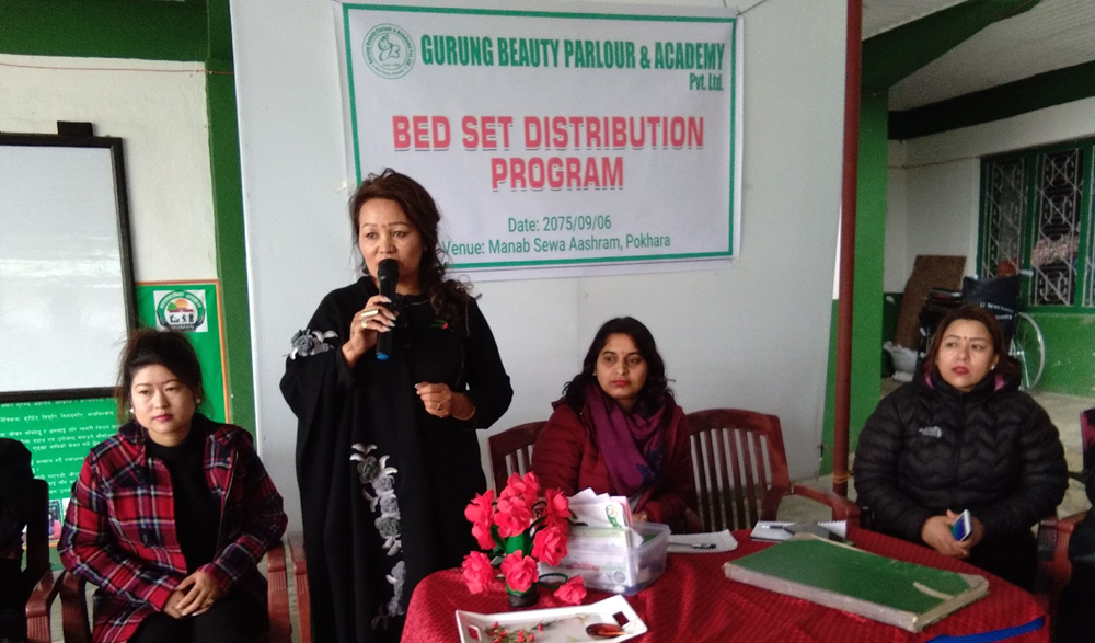पोखरा, ७ पुस । पोखरामा रहेको गुरुङ ब्युटिपार्लर एण्ड एकेडेमी प्रा.लि.ले पोखरा १७ छोरेपाटमा रेहको मानव सेवा आश्रमलाई सहयोग गरेको छ । शनिबार एक कार्यक्रमबीच प्रालिले लोवेट तथा विस्तारा सेट सहयोग गरेको हो ।