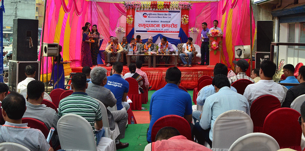 मुक्तिनाथ विकास बैंक लिं को नेपालगंज मा शाखा विस्तार गरेको छ । नेपालगंज उद्योग बाणिज्य संघका अध्यक्ष नन्दलाल बैश्यले उद्घाटन गरेका हुन् ।