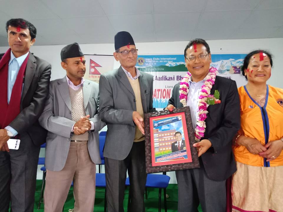 त्यस्तै व्यास नगरपालिकाका प्रमुख बैकुण्ठ न्यौपानेले क्याम्पस र लायन्स बीचको सम्बन्ध पुरानो भएको चर्चा गर्दै लायन्सकै ५० हजार डलर आर्थिक सहयोगबाट क्याम्पसको मुल शैक्षिक भवन निर्माण गरेको स्मरण गरे । लायन्स र आदिकवि अन्तर सम्बन्धित भएकाले आगामी दिनमा पनि समन्वय र सहकार्य गरी अगाडि बढ्न उनले सुझाव दिएका थिए ।