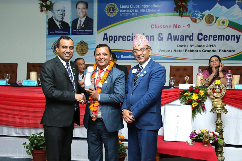 लायन्स क्लब इन्टरनेशनल डिष्ट्रिक्ट ३२५ बि १ नेपाल अन्तर्गत क्लस्टर नम्बर १ को अवार्ड वितरण समारोह सम्पन्न भएको छ । क्लस्टर १ अन्तर्गतका क्लब अध्यक्ष, जोन चियरपर्सन तथा रिजन चियरपर्सनहरु सहित एकबर्षे कार्यकाल सफल बनाउन सहयोग गर्ने ब्यक्तीहरुलाई बर्षभरि गरेका कार्यको उच्च सम्मान स्वरुप अवार्ड प्रदान गरिएको क्लस्टर प्रमुख दुर्गाप्रसाद हुमागाईंले जानकारी दिए । क्लस्टर १ अन्तर्गत ३७ वटा क्लब आवद्ध छन् । डिष्ट्रिक्ट गभर्नर धनराज आचार्यले दिएका सबै जिम्मेवारीलाई कुशलतापुर्बक सम्पन्न गर्दै सबैको सहयोग बाट समुहगत रुपमा सामाजिक सेवाका कार्य गरि जिम्मेवारी पुरा गरेको क्लस्टर प्रमुख तथा डिष्ट्रिक्ट ३२५ बि १ नेपालका सिनियर एम्बेसडर अफ गर्भनर लायन दुर्गाप्रसाद हुमागाईंले बताए ।