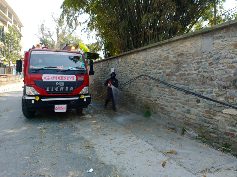 बिहीबार महानगरको न्युरोडस्थित कार्यालयबाट किटनासक औषधी छर्न सुरु गरेको महानगरले शुक्रबार जिरोकिमीदेखि हल्लनचोक, लेकसाइडहुँदै सहिदचोक सम्मको सडकमा किटनासक औषधी छर्केको हो । लेकसाइड क्षेत्रमा किटनासक औषधी छर्न दमकल प्रयोग गरिएको थियो । त्यसैगरी हरिचोक, सिम्पानी, ट्याक्सीचोक, क्याम्पसगेट, शिक्षा कार्यालयचोक लगायतका ठाउँमा किटनासक औषधी छरिएको स्वास्थ्य महाशाखाका सिनियर अहेब अधिकृत हरिलाल आचार्यले जानकारी दिए ।
