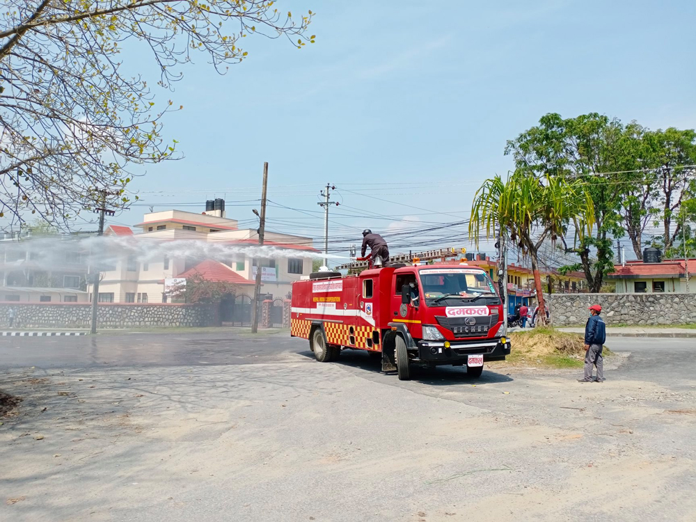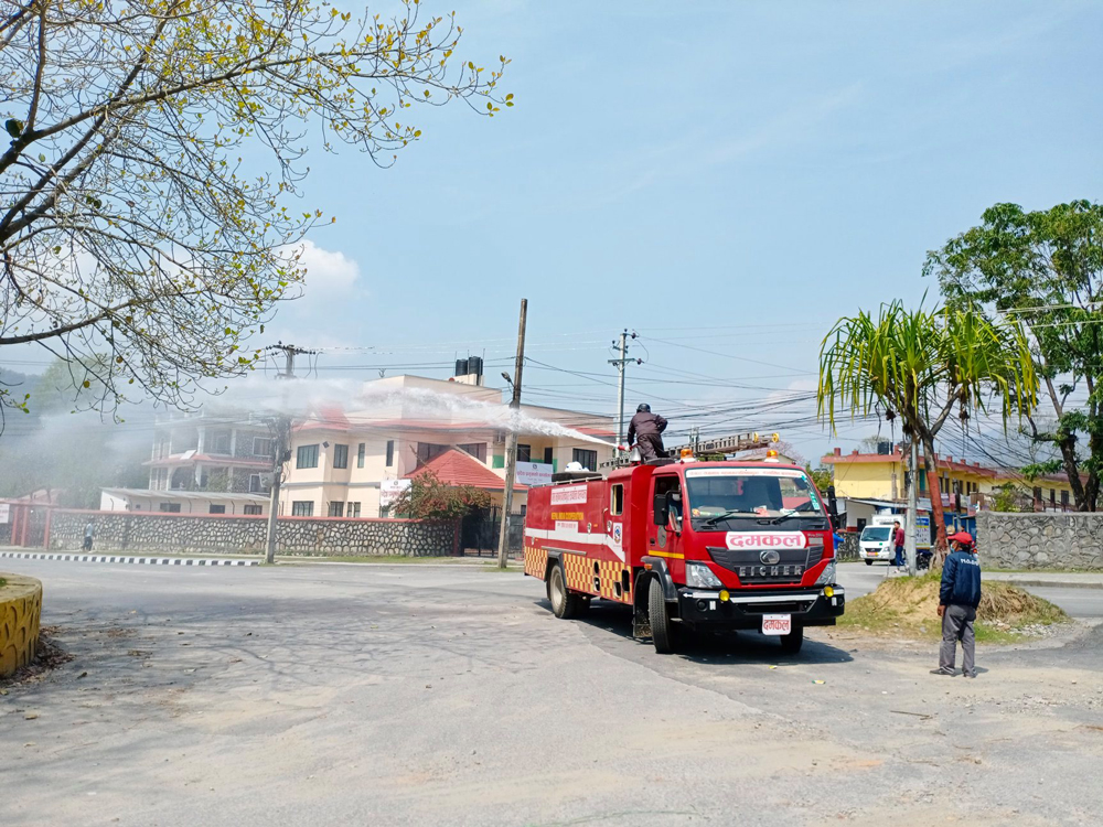 पोखरा । कोरोना भाइरसको संक्रमण फैलान नदिन पोखरा महानगरकाले नगरका विभिन्न ठाउँमा किटनासक औषधी (डिसइन्फेक्सन स्प्रे) छर्केको छ ।