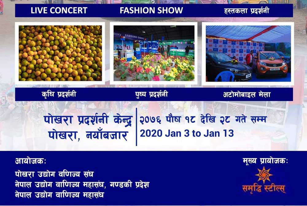 पोखरा, ४ पुस । पोखरामा पञ्चेबाजा र लोकदोहोरीको राष्ट्रियस्तरको प्रतियोगिता हुने भएको छ । यही पुस १८ देखि २८ गतेसम्म पोखरामा हुने ‘राष्ट्रिय औद्योगिक व्यापार मेला–२०७६’को अवसरमा उक्त प्रतियोगिता गर्न लागिएको हो । पोखरा उद्योग वाणिज्य संघको आयोजनामा पोखराको नयाँबजारस्थित प्रदर्शनी केन्द्रमा मेला हुँदैछ ।