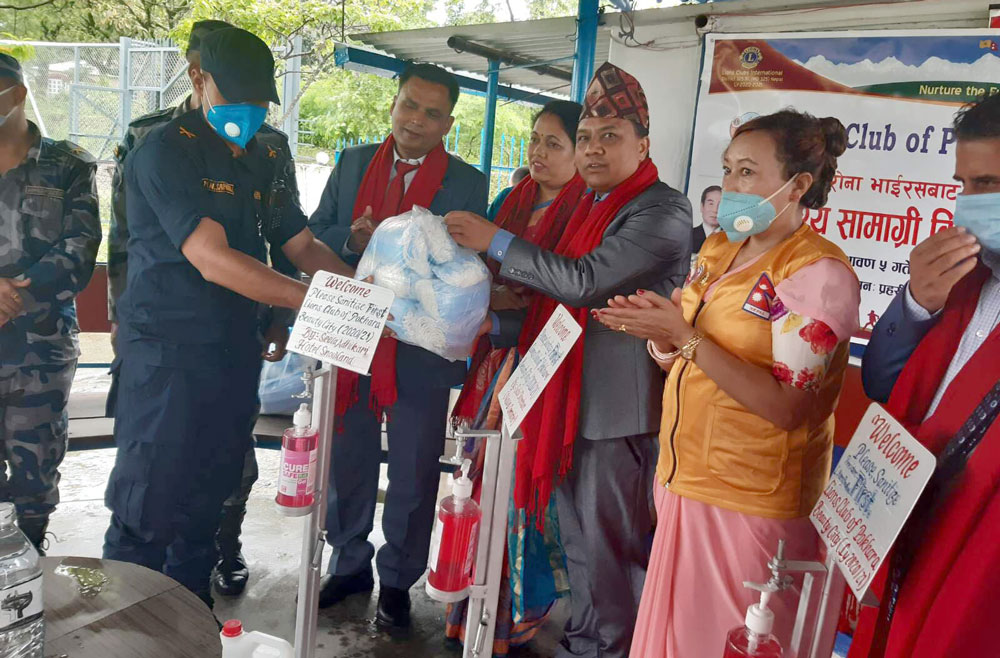 क्लबले प्रहरीलाई १ हजार ८ सय वटा मास्क, १५ लिटर सेनिटाइजर र ३ वटा सेनिटाइजर स्ट्याण्ड सहयोग गरेको छ । लायन्स क्लब्स इन्टरनेशनल डिष्ट्रिक्ट ३२५ बि १ नेपालका गभर्नर मनबहादुर रोकाको प्रमुख आतिथ्यतामा कार्यक्रम भएको हो ।