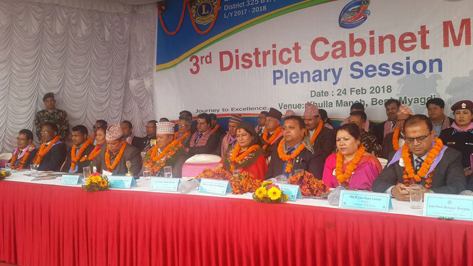 म्याग्दी, १३ फागुन । लायन्स क्लब इन्टरनेशनल डिष्ट्रिक्ट ३२५ बि १ नेपालको तेस्रो क्याविनेट मिटिङ शुक्रबार र शनिबार म्याग्दीको बेनी र धार्मिक क्षेत्र गलेश्वरमा सम्पन्न भएको छ । पहिलो दिन गलेश्वर मन्दिर परिसरमा र दोस्रो दिन बेनीको खुल्ला चौरमा मिटिङ आयोजना भएको हो ।
