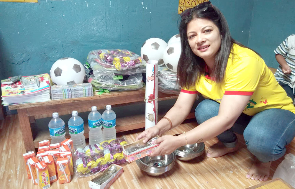 सामाजिक काम गर्ने उद्देश्यले बालबालिकालाई सहयोग गरिएको उनले बताइन् । शनिबार एक कार्यक्रमका बीच २० हजार रुपैयाँ बराबरको सामान सहयोग गरिएको हो । झोला, पुस्तक, खानेपानीको जार, वाटर डिस्पेन्सर कलर, राइस बोल्स, बल, चम्चा, वाल चार्ट लगायतका सामग्री सहयोग गरिएको कोइरालाले जानकारी दिइन् ।