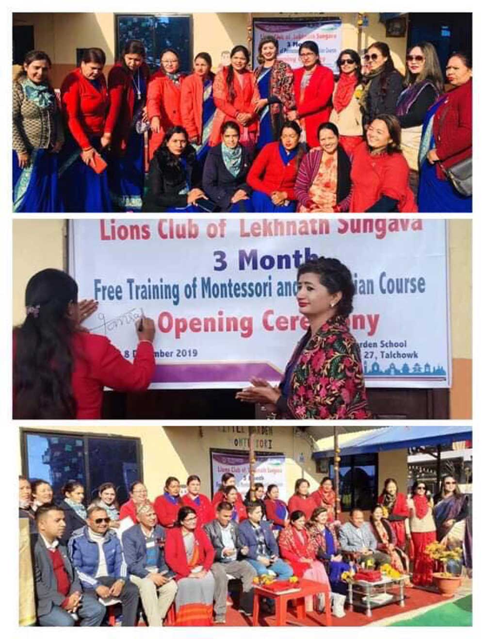 लेखनाथ । लायन्स क्लब अफ लेखनाथ सुनगाभाको आयोजनामा मन्टेश्वरी तथा व्युटिसियन तालिम सुरु भएको छ । तालिम ३ महिनासम्म चल्ने क्लबका अध्यक्ष ऋतु पौडेलले जानकारी दिइन् । लायन्स क्लब्स इन्टरनेशनल डिष्ट्रिक्ट ३२५ बि १ नेपालका डिष्ट्रिक्ट गभर्नर इन्दु लम्सालले हालै एक कार्यक्रमका बीच तालिमको समुद्घाटन गरिन् ।