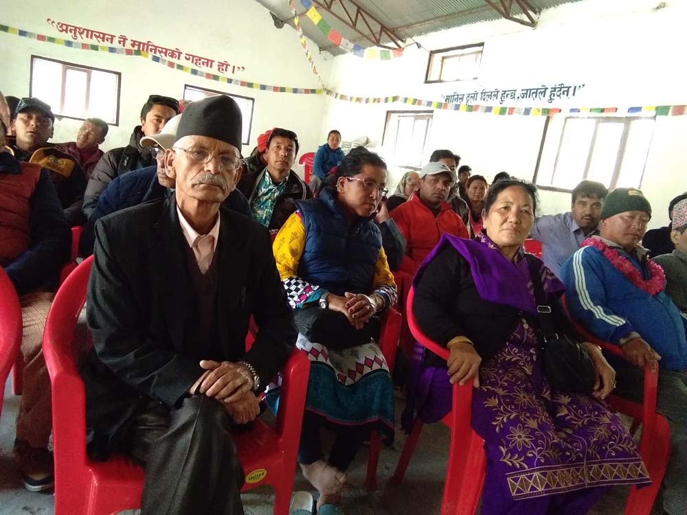 कार्यक्रममा गण्डकी प्रदेश सांसद महेन्द्र थकाली, संविधान सभाका पुर्व सभासद चन्द्र बहादुर गुरुङ, घरपझोङ गाउँपालिकाका अध्यक्ष आश बहादुर थकाली, मुस्ताङ जिल्लाका प्रमुख जिल्ला अधिकारी गंगा बहादुर क्षेत्री, थासाङ गाउँपालिका २ का नरप्रसाद हिराचन, जनआर्दश मा.वि का पूर्व शिक्षक चुडामणि शर्मा लगायतले बोलेका थिए ।