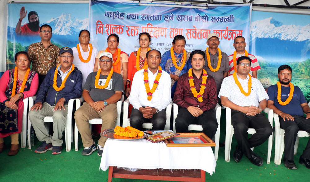 पोखरा, १० असार । पोखरा ९ पृथ्वीचोकमा शनिबार ३ सय २ जनाको मधुमेह तथा रगतमा हुने खराब बोसो (टिजी) सम्बन्धी निशुल्क रक्त परीक्षण गरिएको छ । हेप्पी प्रशोधित शुद्ध पिउने पानीले कृष्ण टोल विकास संस्था, कृष्ण टोल आमा समूह, पार्वती टोल विकास संस्था, पार्वती टोल आमा समूह, प्रगतिशील आमा समूह र शिव टोल विकास संस्थाको सहयोगमा शिविर आयोजना गरेको हो ।