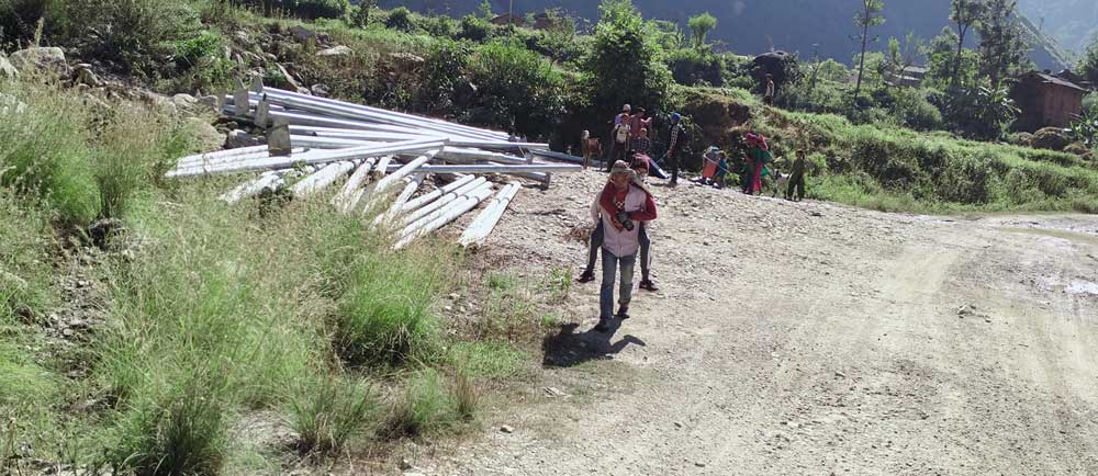जाजरकोट । आर्थिक अवस्था कमजोर भएपछि विरामी पिठ्यूमा बोकेर घेत्मबाट रुकुम पश्चिमको आठवीसकोट नगरपालिकास्थित नगर अस्पतालमा उपचारका लागि बिरामी लगिंदै । तस्वीर : हेमन्त केसी/रासस