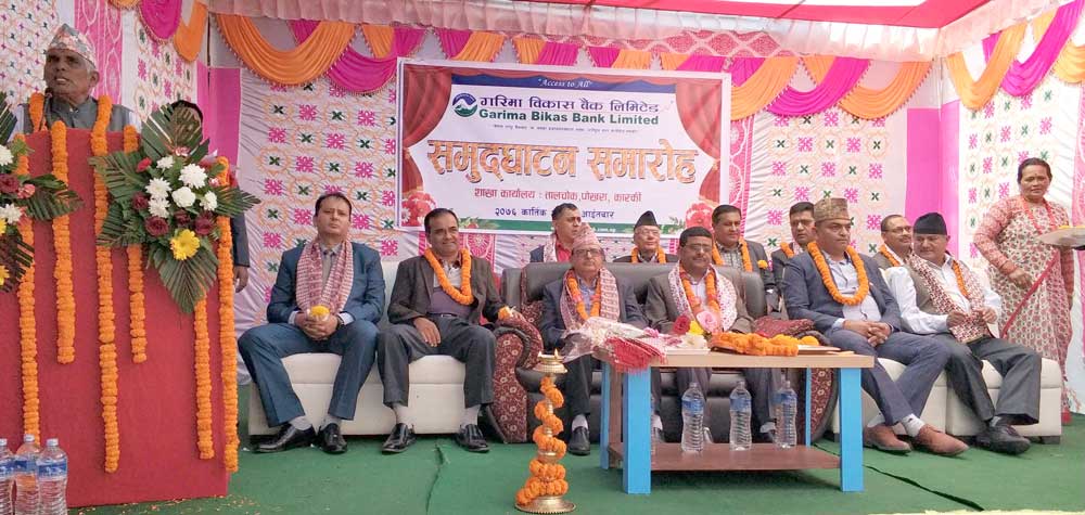 लेखनाथ । गरिमा विकास बैंक लिमिटेडले पोखरा महानगरपालिका २७ स्थित तालचोकमा शाखा कार्यालय सञ्चालनमा ल्याएको छ । शाखाको आइतबार एक कार्यक्रमका बीच उद्घाटन गरिएको छ । कार्यक्रमका प्रमुख अतिथि लेखनाथ उद्योग वाणिज्य संघका अध्यक्ष बलराम ढकालले शाखाको उद्घाटन गरेका हुन् ।