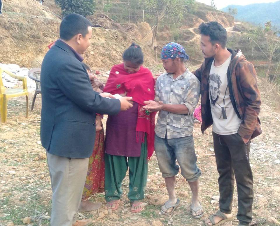 घर निर्माणको लागी व्यास नगरपालिकाले ५० हजार दिने घोषणा गरेको छ । त्यस्तै स्थानीय समाजसेवी सोनाम तामाङले ३० हजार, समाजसेवी नोमा थापाले १० हजार बराबरको सिमेन्ट, दिपचन्द्र फर्निचरले घरको चौकोस, मलेसियाबाट १४हजार ६ सय र स्थानीय क्लब तथा संघसंस्थाबाट २० हजार आर्थिंक सहयोग संकलन गर्न सफल भएको पन्थले जानकारी दिए ।