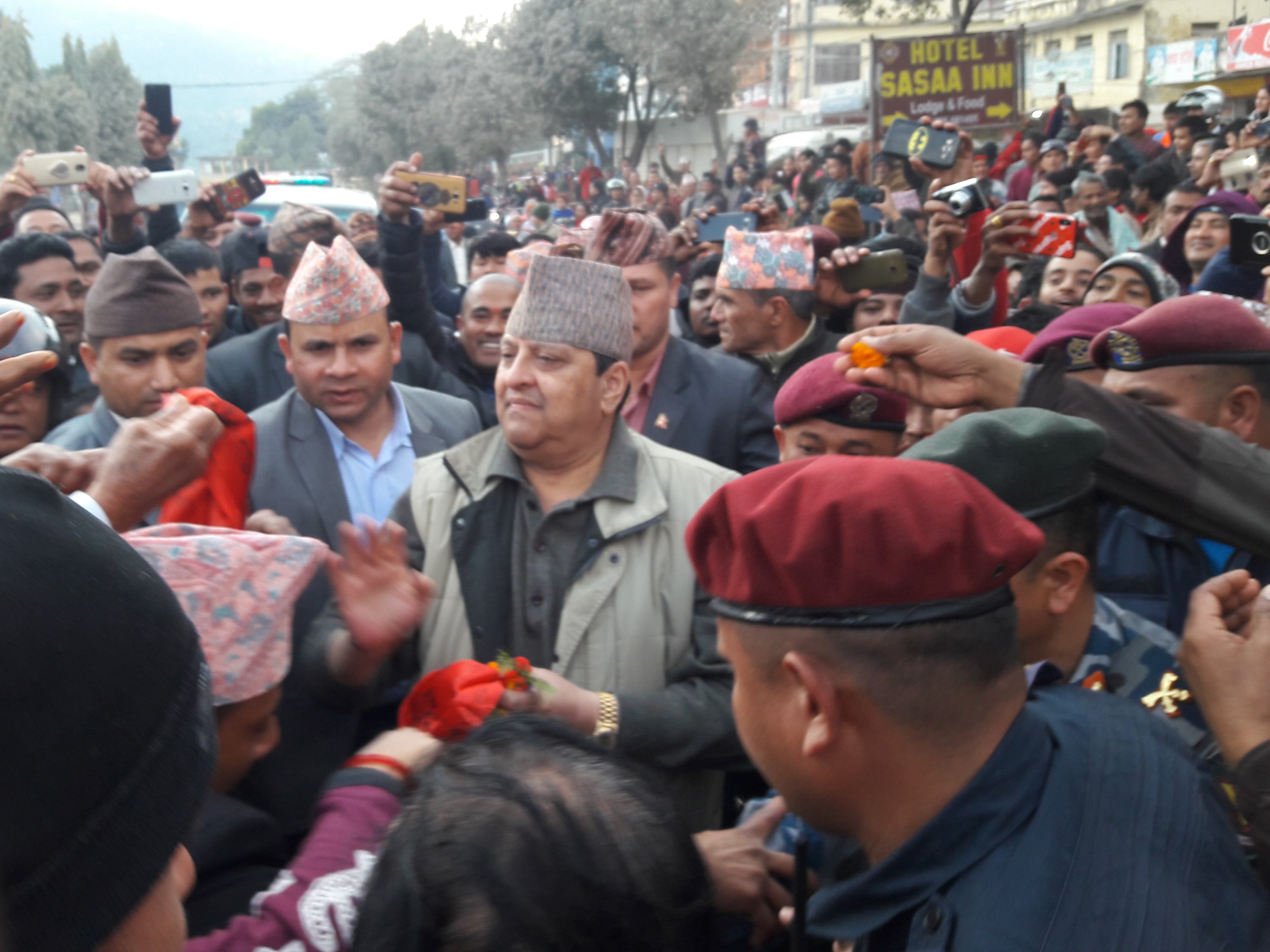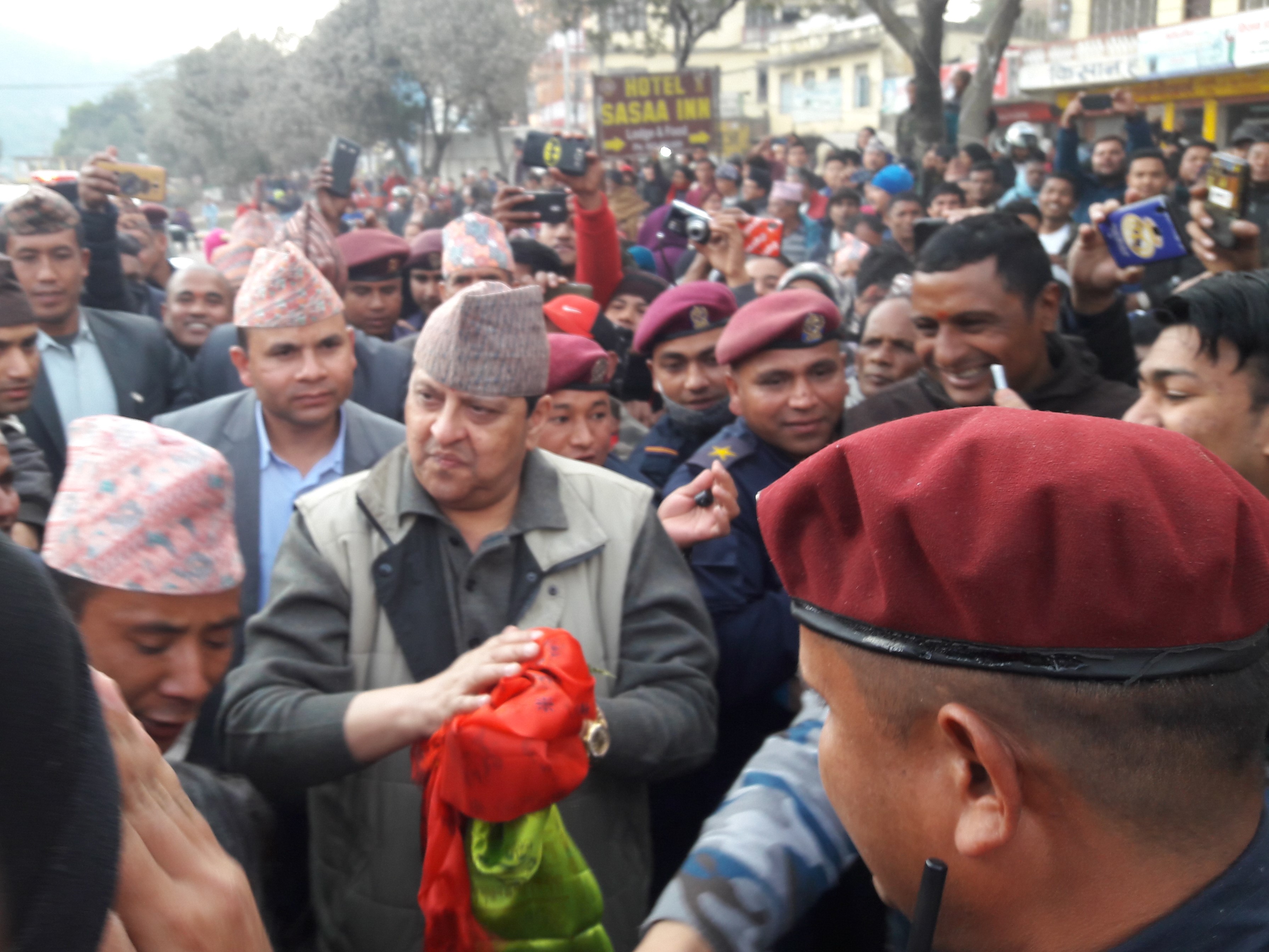पुर्व राजा ज्ञानेन्द्र शाह तथा पुर्व रानी कोमल शाह केही दिन अघि निजी भ्रमणका लागि पोखरा आएका थिए । केही दिनको पारिवारिक भ्रमण सकि काठमाडौँ फर्कने क्रममा राजाको स्वागतका लागी सडकमा भेला भएका राजावादी समर्थकहरुले राजाका पक्षमा नाराबाजी समेत गरेका थिए ।