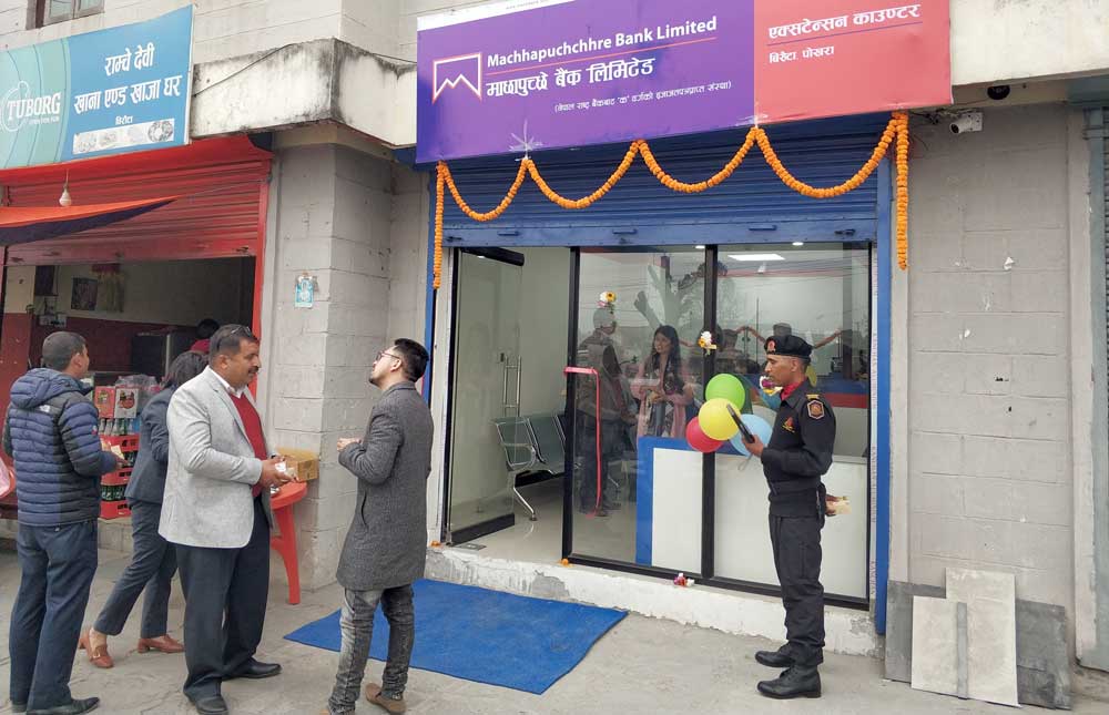 पोखरा, ४ फागुन । माछापुच्छ्रे बैंक लिमिटेडले पोखराको बिरौटास्थित सञ्चयकोषको भवनमा एक्स्टेन्सर काउन्टर विस्तार गरेको छ । काउन्टरको आइतबार एक कार्यक्रमका बीच बैंकका गण्डकी प्रदेश प्रमुख भुवनसिंह खत्री र सञ्चयकोषका पोखरा प्रमुख दिलीपराज पौडेलले संयुक्त रुपमा उद््घाटन गरेका छन् ।