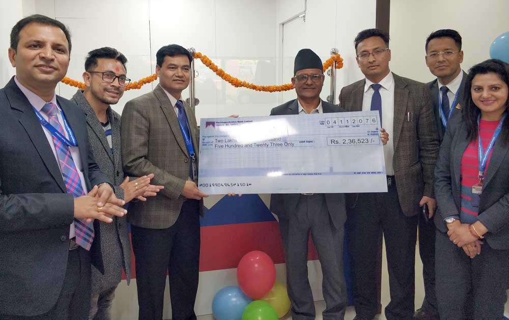 यसैबीच, बैंकमा स्मार्ट बचत खाता खोलेका ग्राहक र ग्राहकको परिवारलाई मेडिकल बिमा बापतको रकम बैंकले भुक्तानी गरेको छ । हृदयघात भइ बिरामी भएकी दुर्गादेवी सुवेदीका श्रीमान शान्त सुवेदीलाई २ लाख ३६ हजार ५ सय २३ रुपैयाँको चेक हस्तान्तरण गरिएको छ । एपेन्डिक्सको अप्रेसन गराएकी दुर्गा शर्मालाई ६६ हजार रुपैयाँको चेक हस्तान्तरण गरिएको छ ।