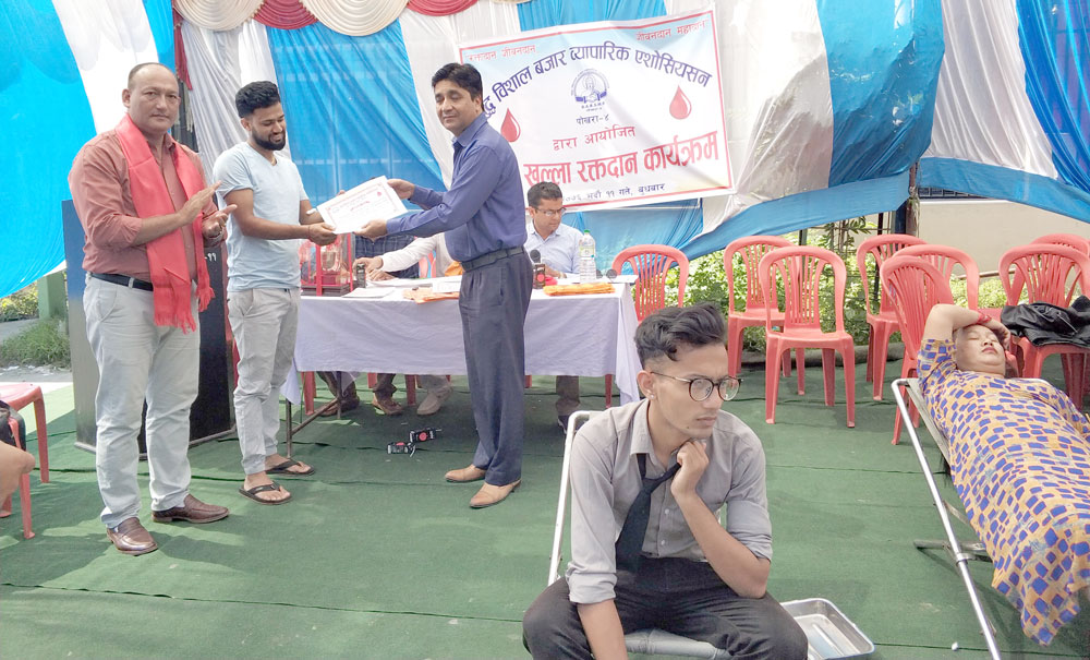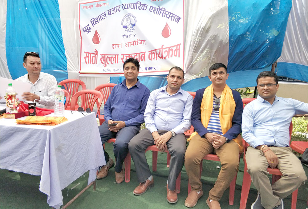 एसोसिएसनका अध्यक्ष केशबबहादुर खत्रीको सभातित्वमा आयोजित रक्तदान कार्यक्रममा कस्मेटिक व्यवसायी संघका अध्यक्ष उमपति ढकाल, कपडा व्यवसायी एसोसिएसनका अध्यक्ष विष्णुप्रसाद तिमिल्सिना, थोक व्यवसायी संघका अध्यक्ष तामलाल घिमिरे लगायतले बोलेका थिए ।