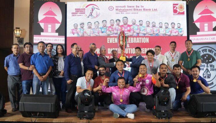 काठमाडौं । महालक्ष्मी कर्पोरेट क्रिकेट लिग २०२४– संस्करण ३ का विजेतालाई पुरस्कार वितरण गरिएको छ । महालक्ष्मी विकास बैंकको ३० औँ वार्षिकोत्सवको अवसरमा गत जेठ २२ गतेदेखि २४ गतेसम्म क्रिकेट लिग आयोजना गरिएको हो ।