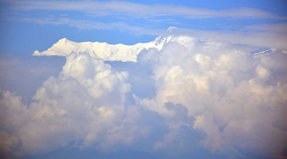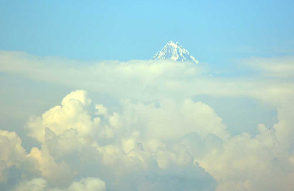 तनहुँको व्यास नगरपालिका–५ मानहुँकोटबाट देखिएको हिमाल । मौसम खुलेको बेला यहाँबाट पाँच वटा हिमालको दृश्य अवलोकन गर्न सकिन्छ । तस्बिर : कृष्ण न्यौपाने/रासस