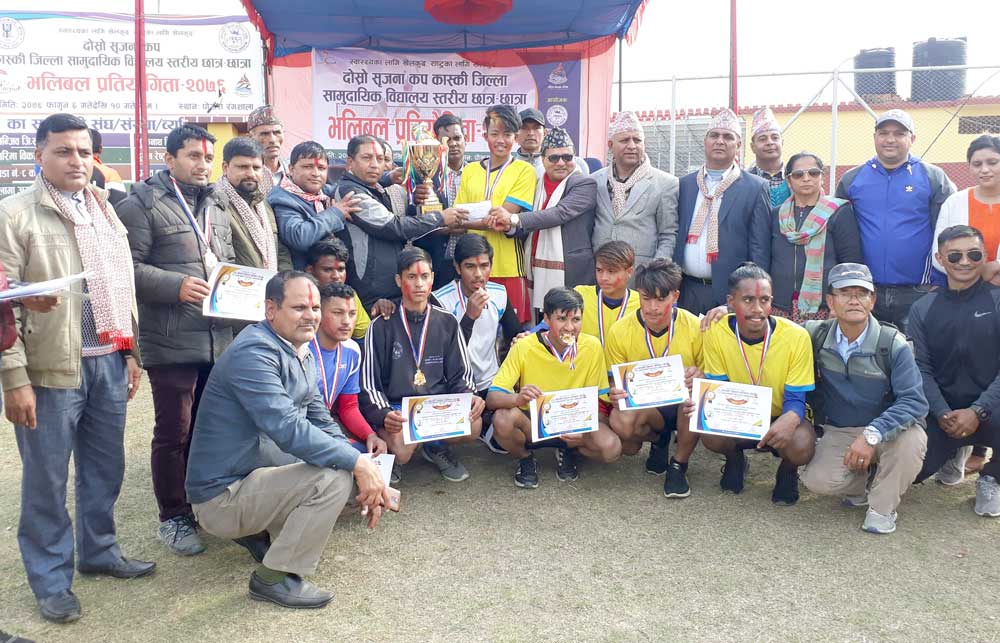 छात्र तथा छात्रातर्फको उपाधि बिजेता राष्ट्रिय मावि र जनप्रिय माविले समान ५०÷५० हजार, ट्रफी, मेडल र प्रमाण पत्र प्राप्त ग¥यो । उपबिजेता बनेका वाराही मावि र ताल वाराही माविले समान ३०÷३० हजारसहित ट्रफी, मेडल र प्रमाण पत्र प्राप्त ग¥यो ।
