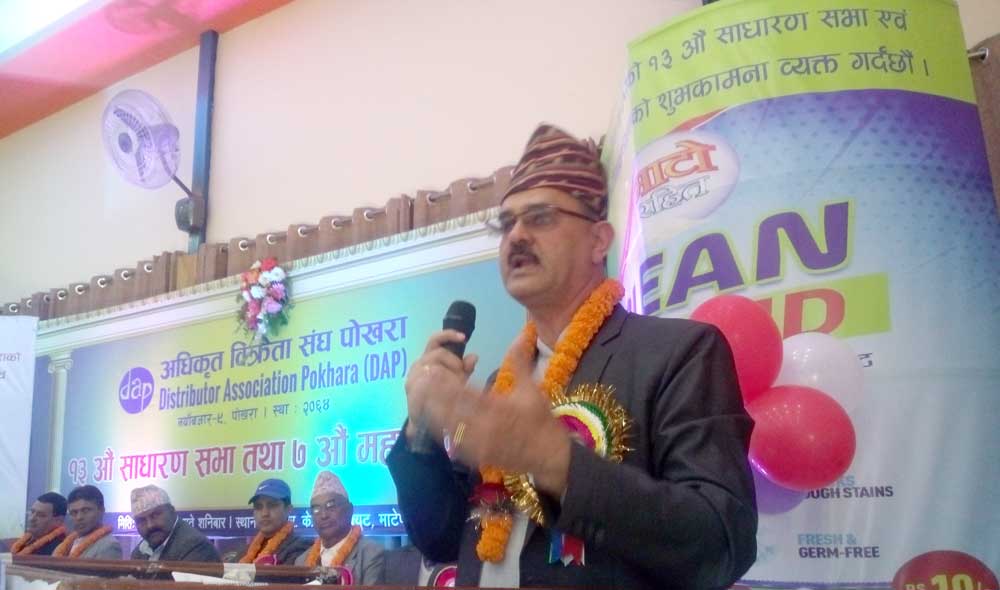 नेपाल वितरक महासंघका सचिवालय सदस्य दुर्गाराज श्रेष्ठले व्यवसायीलाई सधैं पेलिरहने राज्यको नीति ठीक नभएको भन्दै यसलाई सच्याउन सबै सरोकारवालाको ध्यान जानुपर्ने खाँचो औंल्याए । संघका अध्यक्ष हरिराज पन्तको अध्यक्षतामा भएको कार्यक्रममा पोखरा भाँडा व्यवसायी संघका अध्यक्ष बलराम तिमिल्सिना, संघका वरिष्ठ उपाध्यक्ष अनिल श्रेष्ठ, महासचिव मनोज श्रेष्ठ लगायतले बोलेका थिए ।