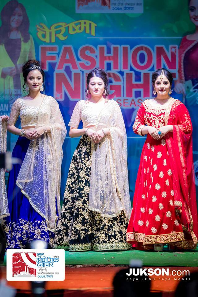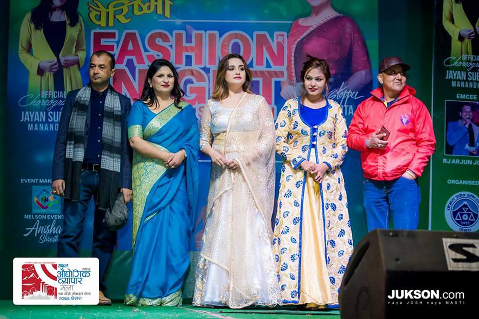 पोखरा, ६ माघ । पोखराको नयाँबजारमा जारी सफल राष्ट्रिय व्यापार मेला तथा दोस्रो मोवाइल मेलाअन्तर्गत शुक्रबार फेसन सो सम्पन्न भएको छ । नेपालका चर्चित नायिका सञ्चिता लुईँटेल ¥याम्पमा उत्रिएकी थिइन् । चेरिष्मा इम्पोरियमको प्रायोजनमा ‘फेसन सो’ आयोजना गरिएको हो ।