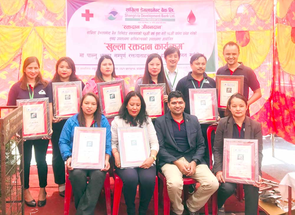 पोखरा । सांग्रिला डेभलपमेन्ट बैंक लिमिटेडले स्थापनाको १५औं वार्षिकोत्सव मनाएको छ । वार्षिकोत्सवको अवसरमा बैंकले सोमबार वृहत रक्तदान कार्यक्रम सम्पन्न गरेको छ ।