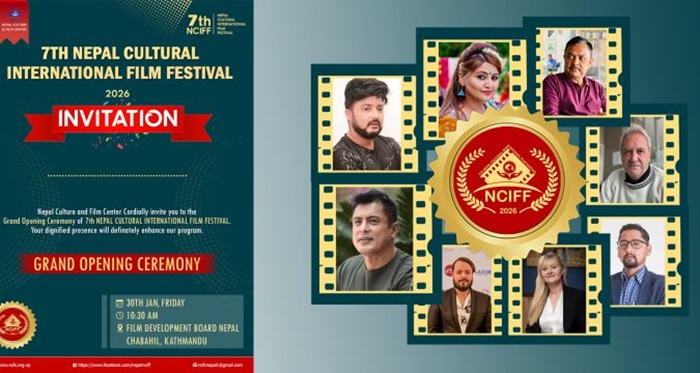 काठमाडौं । नेपाल संस्कृति तथा चलचित्र केन्द्रको आयोजनामा ‘ नेपाल कल्चरल इन्टरनेशनल फिल्म फेस्टिभल (NCIFF) को सातौँ संस्करण आयोजना हुने भएको छ । माघ १६ गतेदेखि १८ गतेसम्म चाबहिलको चलचित्र विकास बोर्ड, भृकुटीमण्डपस्थित नेपाल पर्यटन बोर्ड र नेपाल पुलिस क्लबमा आयोजना हुने महोत्सवमा ३९ देशका ८५ चलचित्रहरु प्रदर्शन हुने भएका छन् ।