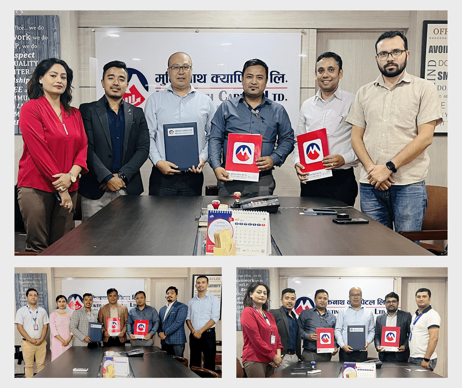 काठमाडौं । मुक्तिनाथ विकास बैंकले सेवाग्राहीहरुलाई सुविधा दिन र सेयर लगानी गर्न चाहने ग्राहकलाई सम्पूर्ण सेवाहरु एकै स्थानबाट उपलब्ध गराउन मुक्तिनाथ क्यापिटल लि. र सेयर ब्रोकर कम्पनीहरुबीच त्रिपक्षीय व्यावसायिक सम्झौता गरेको छ ।