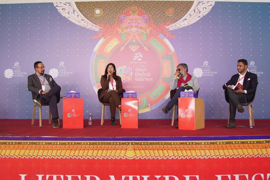 Pokhara : The number of people leaving the country for employment opportunities is increasing rapidly. Although the country is receiving a high amount of remittance, the migration of youth to foreign lands has become one of the major problems of the country. In the 11th edition of the Nepal Literature Festival, a discussion session was conducted about it. The speakers of the session were the former CEO of Nabil Bank, Anil Keshari Shah, Professor Kapil Adhikari, and NYEF Kathmandu Chapter President Prathana Saakha. The theme of the session was “Swadesh Kina Basney?” which translates to “Why stay in the homeland?” in English.