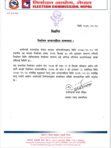 काठमाडौं । निर्वाचन आचारसंहिता आजदेखि हटेको छ । आयोगले एक विज्ञप्ति जारी गर्दै गत वर्ष चैत २५ गतेदेखि लागू भएको आचारसंहिता जेठ १० गतेदेखि लागू नहुने जनाएको हो ।