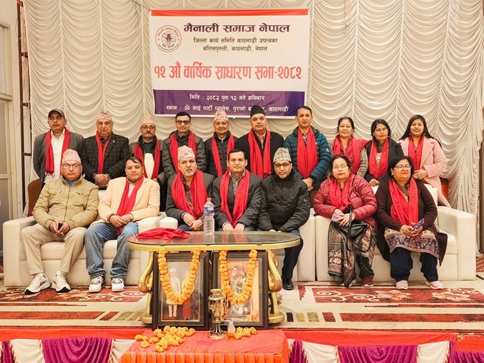 काठमाडौं । मैनाली समाज नेपाल जिल्ला कार्य समिति काठमाडौं उपत्यकाको साधारणसभा सम्पन्न भएको छ । कार्यक्रममा ८० वर्ष भन्दा बढी उमेर समूहका ज्येष्ठ नागरिकलाई सम्मान गरिएको छ ।