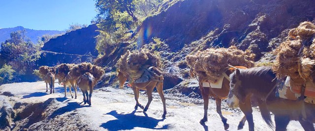 दार्चुला । दार्चुलाको नौगाड गाउँपालिका–१ का स्थानीयवासी खच्चडमार्फत अल्लो ढुवानी गर्दै । यस गाउँपालिकामा सबैभन्दा बढी अल्लो उत्पादन हुने गर्छ । सडक नपुगेका कारण उनीहरुले खच्चडमार्फत अल्लो ढुवानी गरेका हुन् । तस्बिर : नरेन्द्रसिह कार्की/रासस