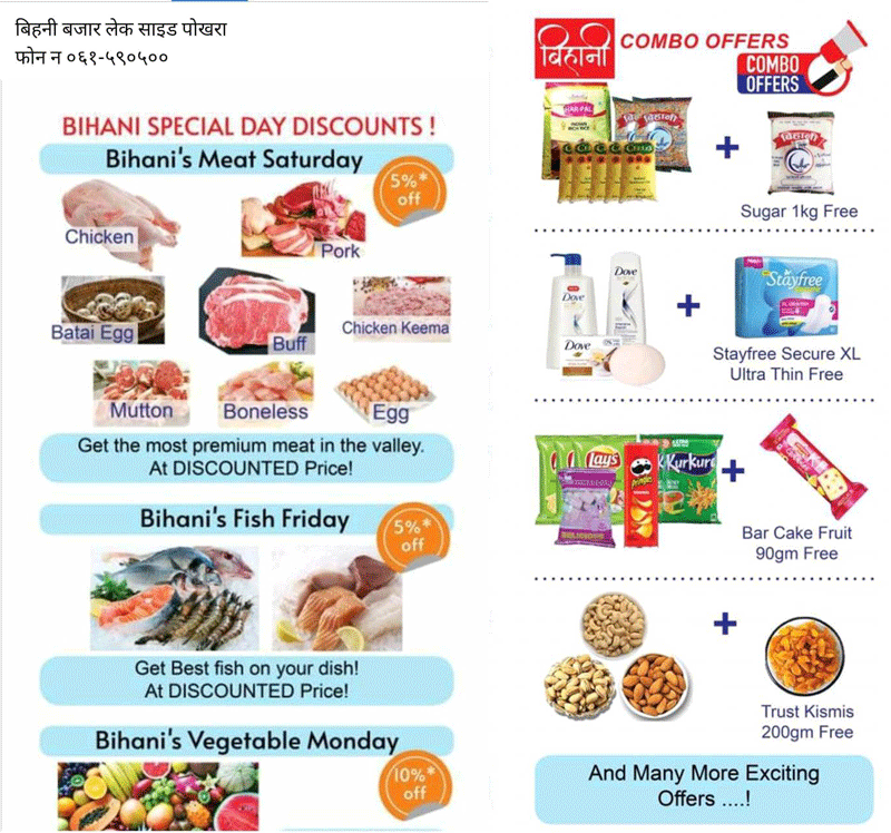 स्वदेशी तथा स्थानिय उत्पादनलाई जोड दिई सम्पुर्ण प्रकारका दैनिक उपभोग्य सामग्री उपलब्ध गराइने श्रेष्ठले बताए । ग्राहकले अनलाइन मार्फत पनि सामान अर्डर गर्न सक्ने र होम डेलिभरीको सुविधा पनि रहेको श्रेष्ठले जानकारी दिए ।