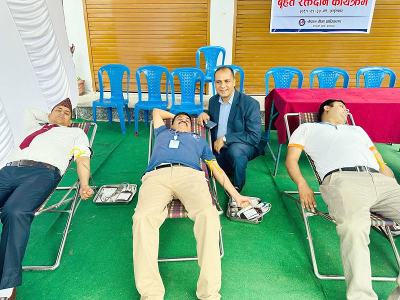 रक्तदान कार्यक्रम प्राधिकरणको प्रदेश कार्यालय पोखरामा भएको हो । जीवन, लघु तथा निर्जीवन बीमाका कर्मचारी, बीमा अभिकर्ता, सर्भेयर लगायत सर्वसाधारणको समेत उल्लेख्य उपस्थिति थियो । कार्यक्रम संचालन नेपाल बीमा प्राधिकरणका सहायक निर्देशक सुन्दर प्रसाद शर्माले गरेका थिए